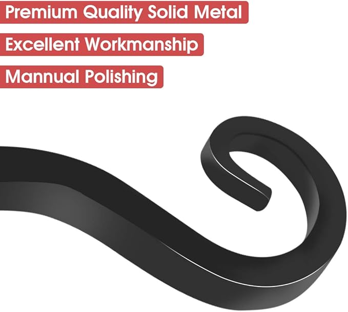 Jardim 2 Pack 6 Inch Premium Decorative Metal Iron Wall Hook, Indoor Outdoor Plant Hanger, Rustic Hanging Gardening Bracket Hook, for Planters, Bird Feeders, Lanterns, Wind Chimes (Black)