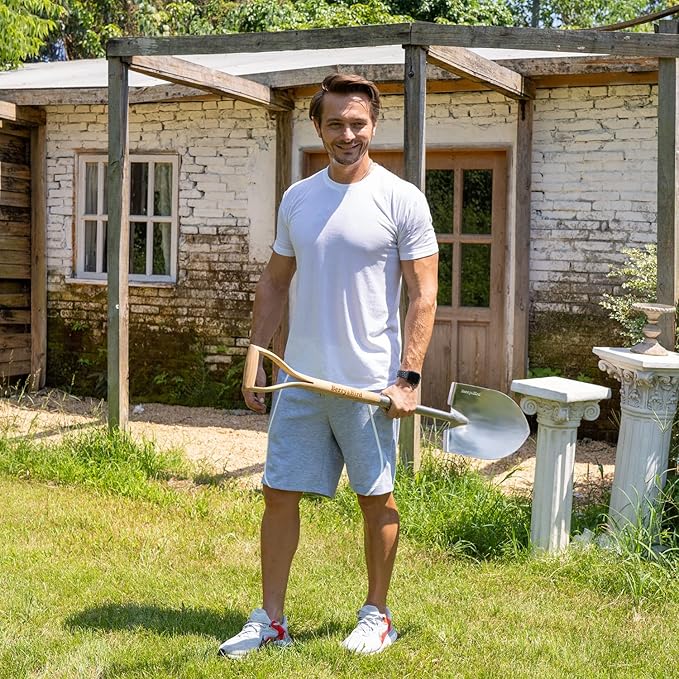 Berry&Bird Shovels for Digging, 43’’ Round Spade Heavy Duty Shovel with Wooden D Handle Stainless Steel Snow Shovel Garden Shovel Yard for Transplanting & Outdoor
