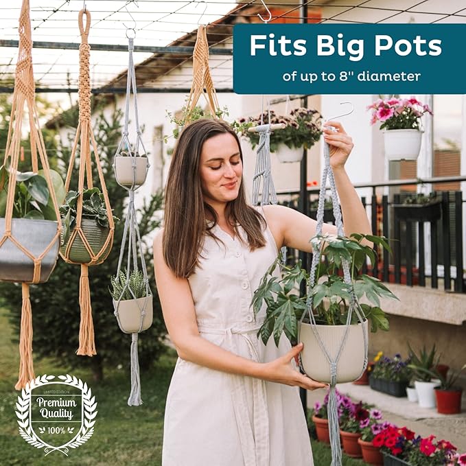 - For Various Pot Sizes - Our hanging planter can fit most pots. As long as itโs 8โ in diameter or less, our 6-Pack ceiling plant hangers provide 6 different designs hangers for various pot and plant sizes.
