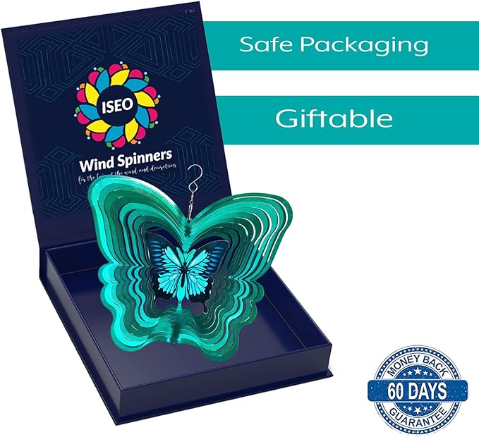 Butterfly Wind Spinners for Yard and Garden, Metal Butterfly Ornaments for Garden Décor, Outdoor Wind Spinner, Butterfly Gifts, Outdoor Garden Decoration, 12 inch Butterfly Wall Décor by ISEO