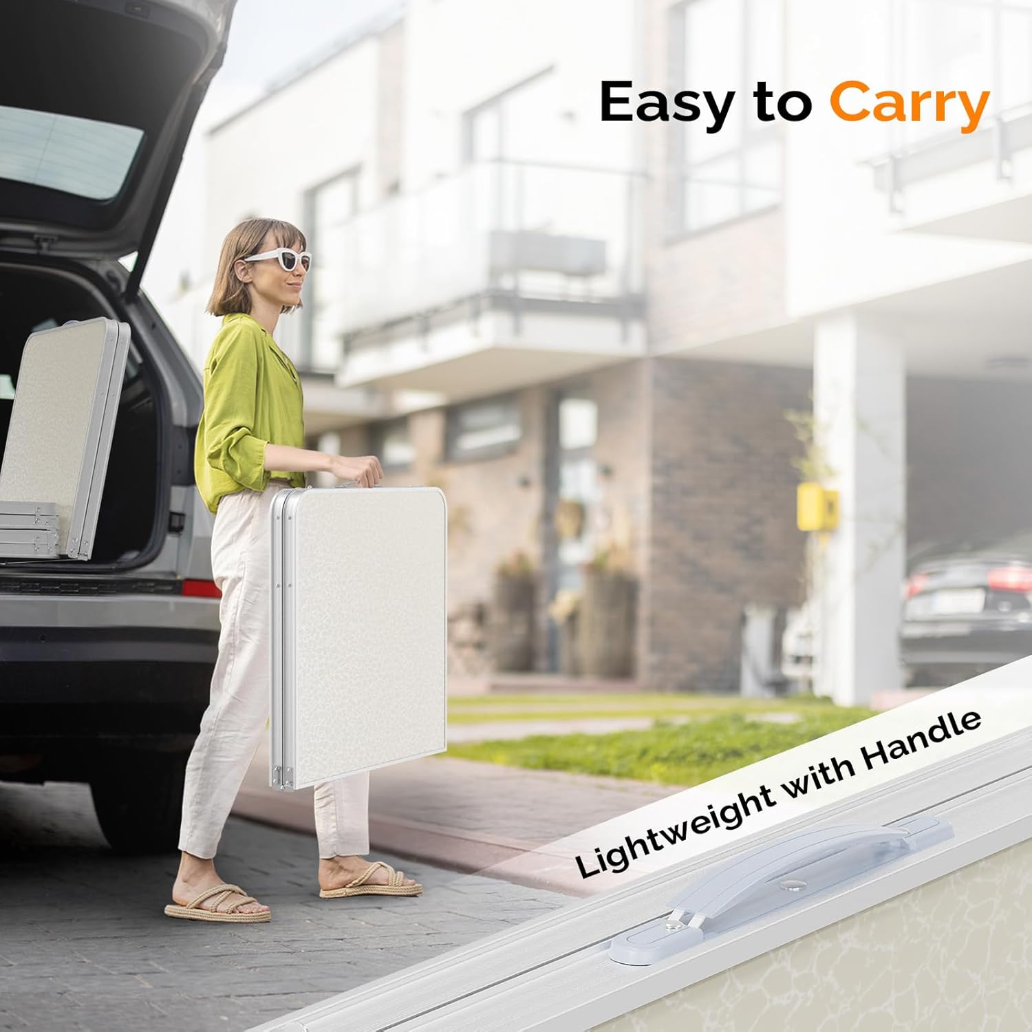 VINGLI 4FT White Folding Table with Carrying Handle Height Adjustable Lightweight Fold Up Portable for Indoor Outdoor Picnic,Camping,Hiking,Fishing,BBQ …
