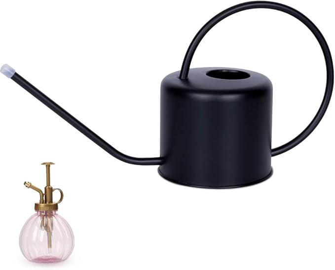 - 【FUNCTIONALITY AND DECORATION IN ONE STAINLESS STEEL WATERING CAN】Do you often forget watering your plants? Then this vintage watering can will remind you! There is a narrow, hollow pipe near the base of the watering pot indoor that enables the water to travel up through the handle and ends up exiting through the spout. Fit for all kinds of indoor or outdoor plants, especially for succulent plants. Nice looking metal with elegant black paint makes watering pail a decent decoration