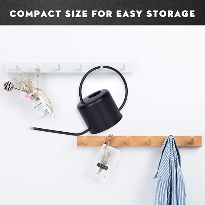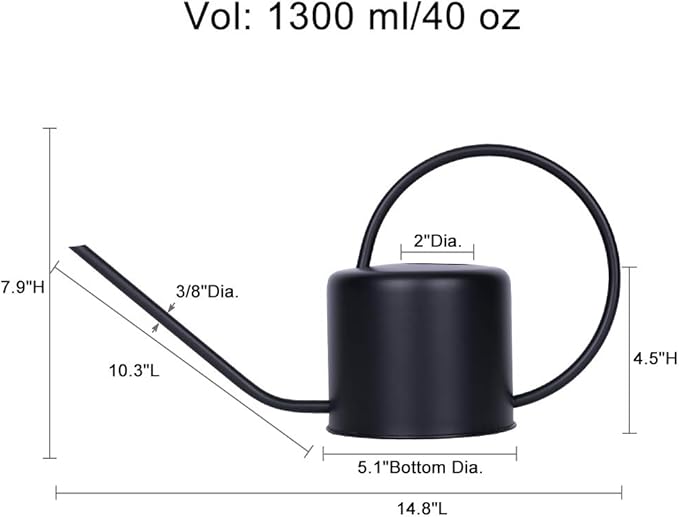 - 【CPMPACT SIZE & GREAT GIFT】This watering can for house plants large is 14.8"L x 5.1"Bottom Dia. x 7.9"H. Compact and tiny shape makes it convenient to hang or place at any corner of the house. With a capacity of 1.3 liter(40oz), you can fill the watering pitcher under most faucets. Suitable for kids or someone who is suffering from arthritis to water house plants. Also a wonderful gift for your family members, friends or any plant lover