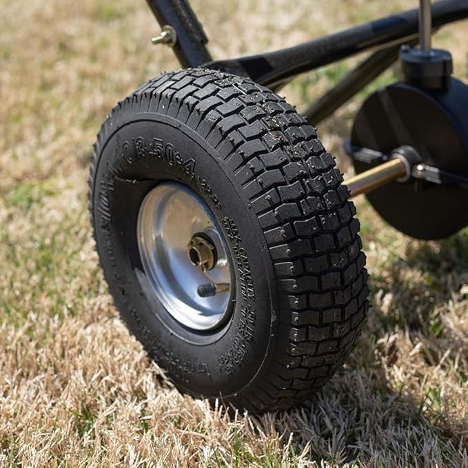 - QUALITY AXLE AND TIRES: The axle and tires on our broadcast spreader are made with quality materials that will not break down over time. It is the best tool for reliable and dependable garden treatments. Our spreader features 4 flow settings.