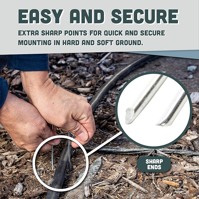 - NO RUST, VERSATILE APPLICATIONS : Easy to use to pin down weed barrier fabric, irrigation hoses, landscape lighting cords. Perfect for anchoring fencing including electric dog fences or holding down sod and garden edging.