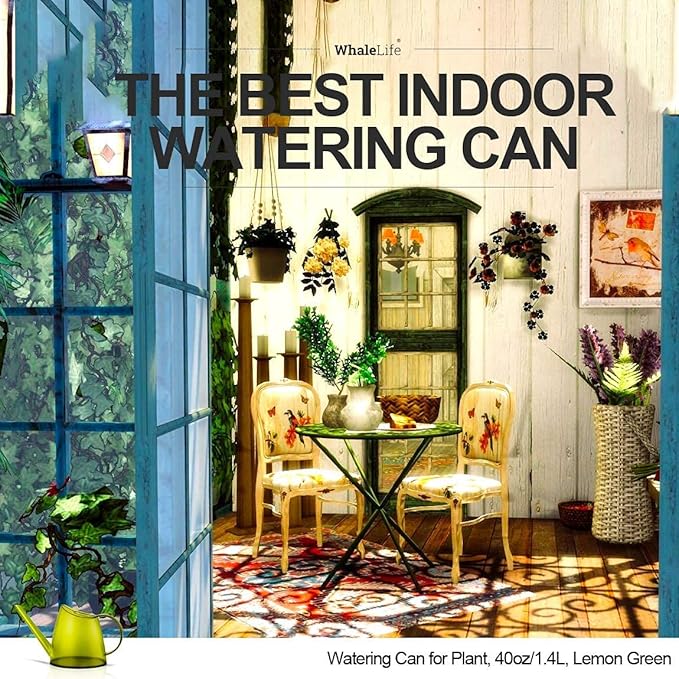 WhaleLife Indoor Watering Can for House Bonsai Plants (1.4L, Green Lemon)