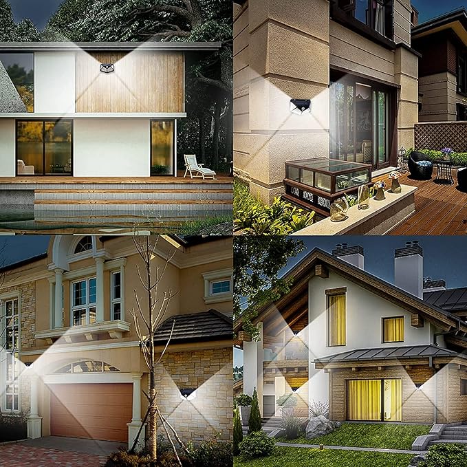 - ☀【3 Intelligent Lighting Modes】 1) Strong lighting mode - when people passed by, the motion sensor lights will light up with maximum brightness, and will turn off when there is no one nearby. 2) High light + slight lighting mode, when people passed by, the solar lights will light up with maximum brightness. When no one passes by, solar wall lights always light in dim mode. 3) Slight light mode, the motion sensor light is always in a slight light state no matter if there is no one passing by.