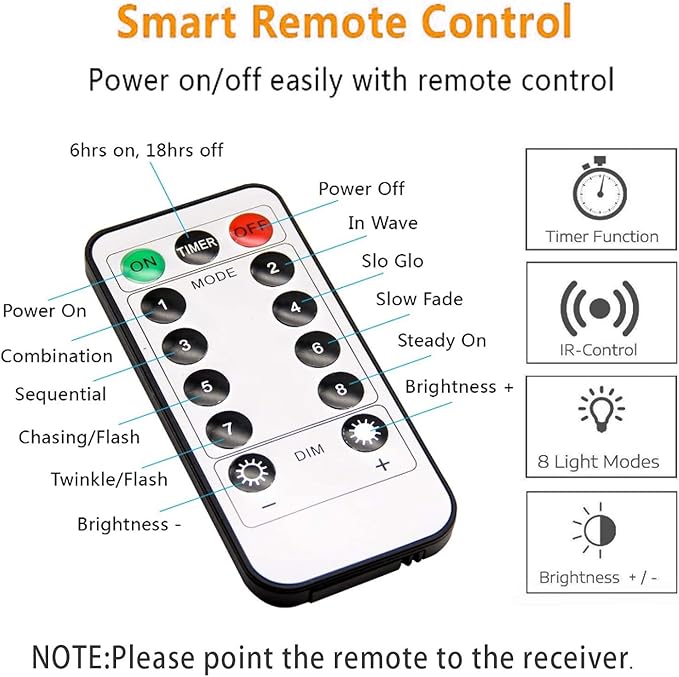 - 【8 Variable Modes】Variable mode (8 Modes) and brightness settings provide the perfect solution for your decorative lighting needs.Built-in memory chip will remember the last setting till the next time light up.