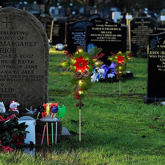 - 【Christmas Theme Decoration】-- Stake this solar lighted cross at the grave site of a loved one at Christmas time. It's a thoughtful way to honor their memory during the holidays.