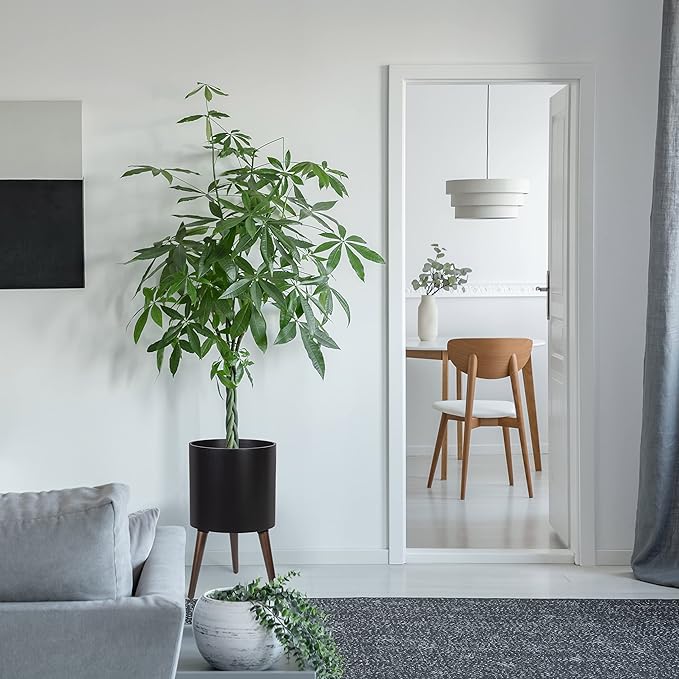 D'vine Dev 12 Inch Planter Pot with Stand, Mid-Century Tall Plant Pot with Legs for Indoor Plants, Large, Black, 88-O-C-2
