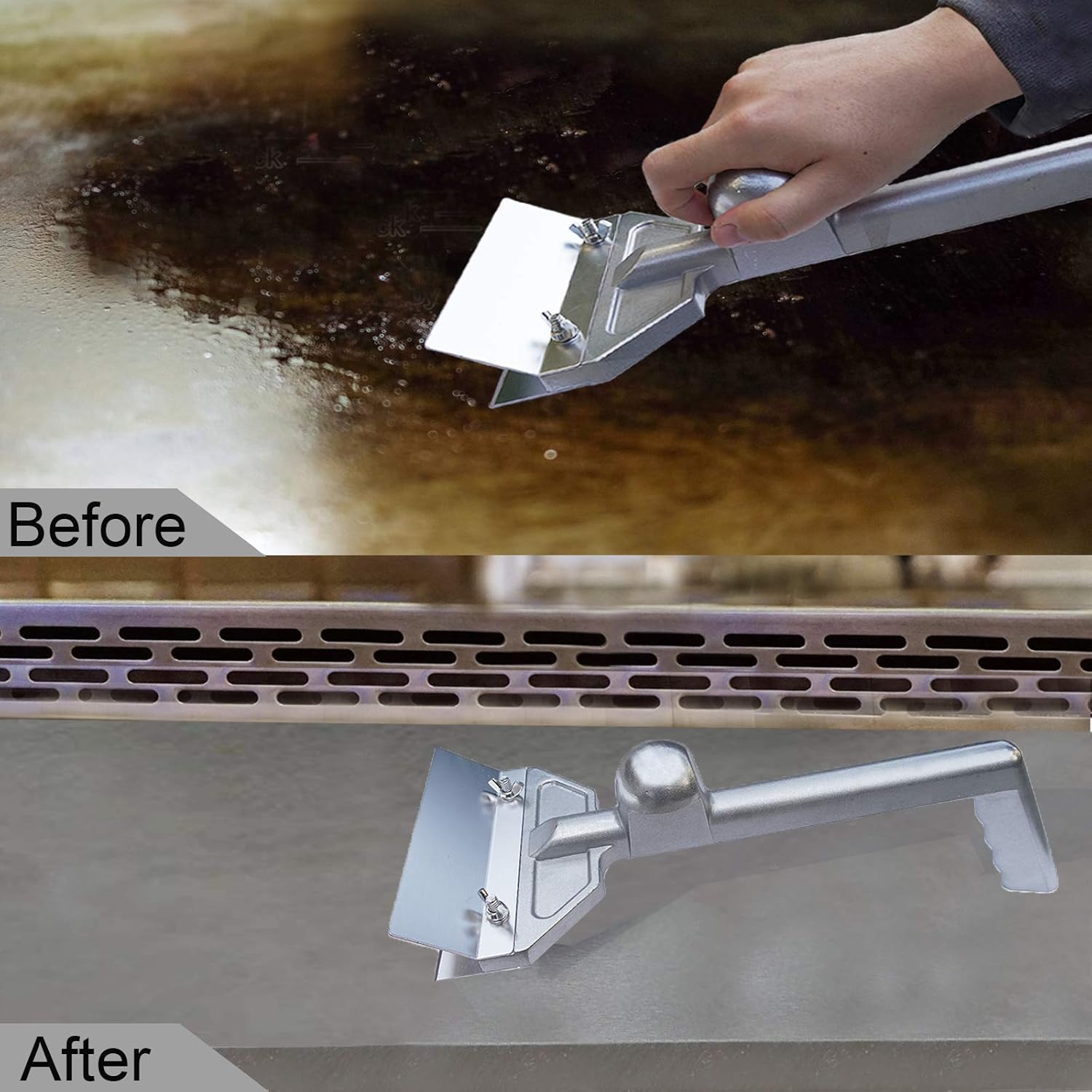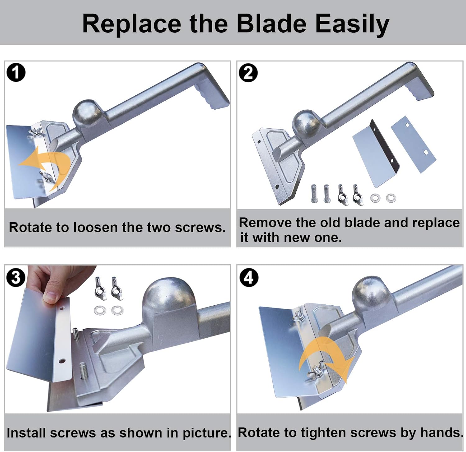 - Easy to Use and Clean: When replacing the blade for the long grill scraper, simply loosen the screws and replace it with a new one by hands. If use the heavy duty scraper for grill frequently, recommend to replace the blade once a month. When cleaning the aluminum scraper, remove the blade and use detergent and hot water to clean
