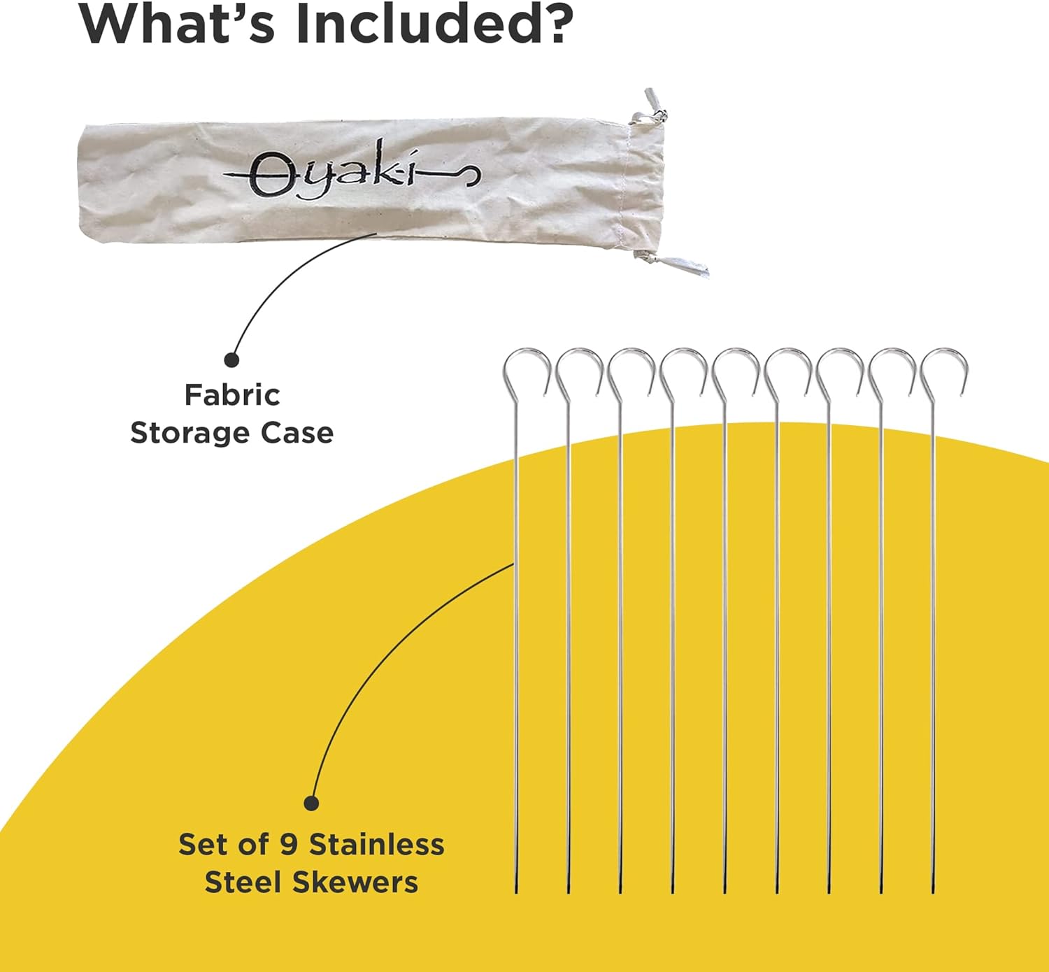 - STAINLESS STEEL BBQ SKEWERS FOR DURABILITY: O-Yaki’s metal skewers are made from durable stainless steel, ensuring they are resistant to rust and can withstand repeated use. These sturdy BBQ skewers won’t bend or break, providing a consistent grilling experience for meats, veggies, seafood, and more.