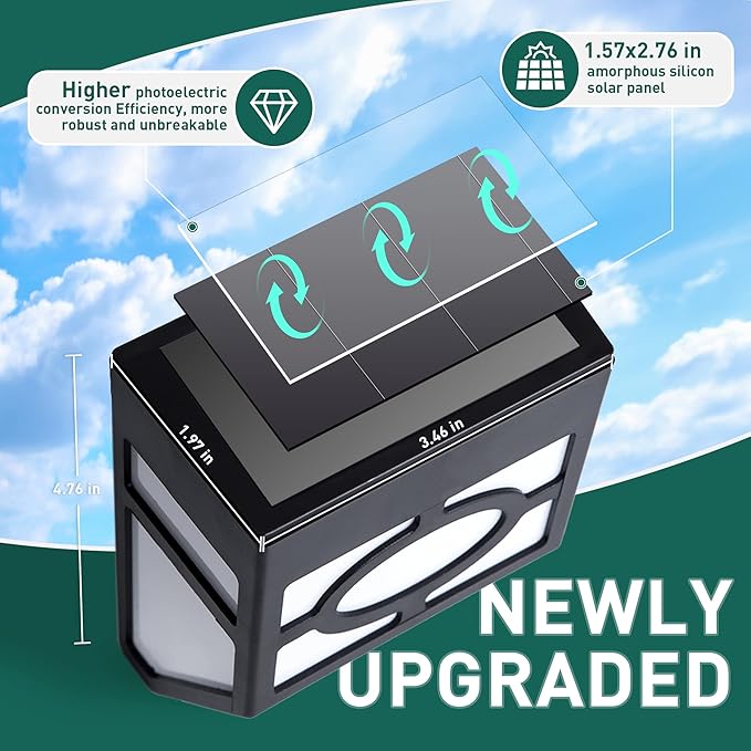 - 【SOLAR DECK LIGHTS】During the day, solar panels absorb energy from the sun and convert it into electrical energy, which is released at night. With just 6-8 hours of sunlight, can provide 8-10 hours of lighting at night, meet your outdoor lighting needs