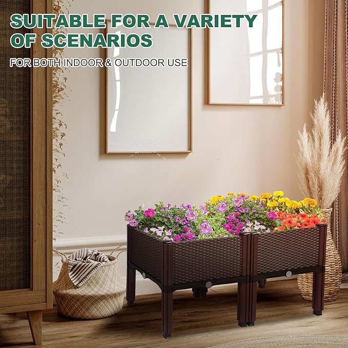 - Durable Construction: Made from reinforced PP in rattan pattern, the planter boxes are lightweight, weather resistance, stylish yet sturdy for long time use
