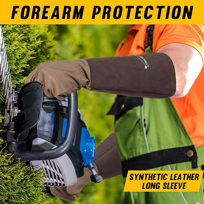 - There are no more awful looking arms! Extended durability synthetic leather gauntlets cuff protects forearms from cuts and scratches