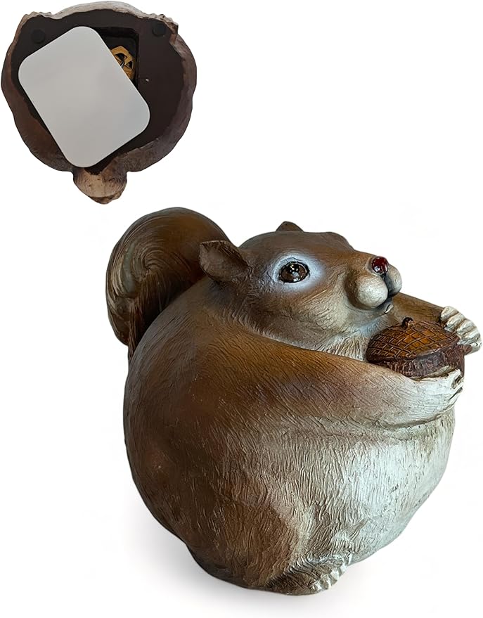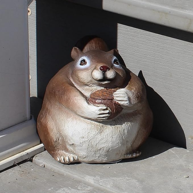- Garden - This Animated Squirrel Garden Statue is Made with Sturdy Resin that Resists Fading, Peeling, and Scratching. Perfect for Any Outdoor Setting.