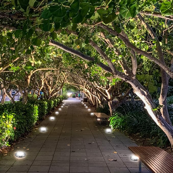- Upgraded Design:12Pack 12 LED lamp beads solar ground lights, making the product have a larger lighting range than similar solar lamps, waterproof and durable, can withstand rain and snow weather and 80KG standing body.