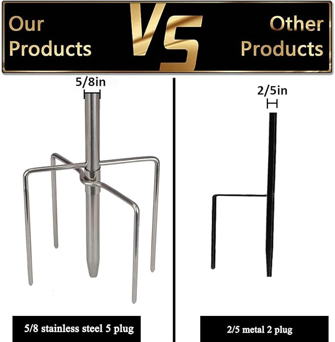 - ❤5 BASE PRONGS & STABILITY: The base of the shepherd hooks outdoor is constructed with two double forked based prongs and an extra long one. The 5 base prongs provide better stability to the shepherd hooks and allow it to bear heavier weight without falling down or bending. Shepherd hook with base are more stable and sturdy when plugged into the soil.