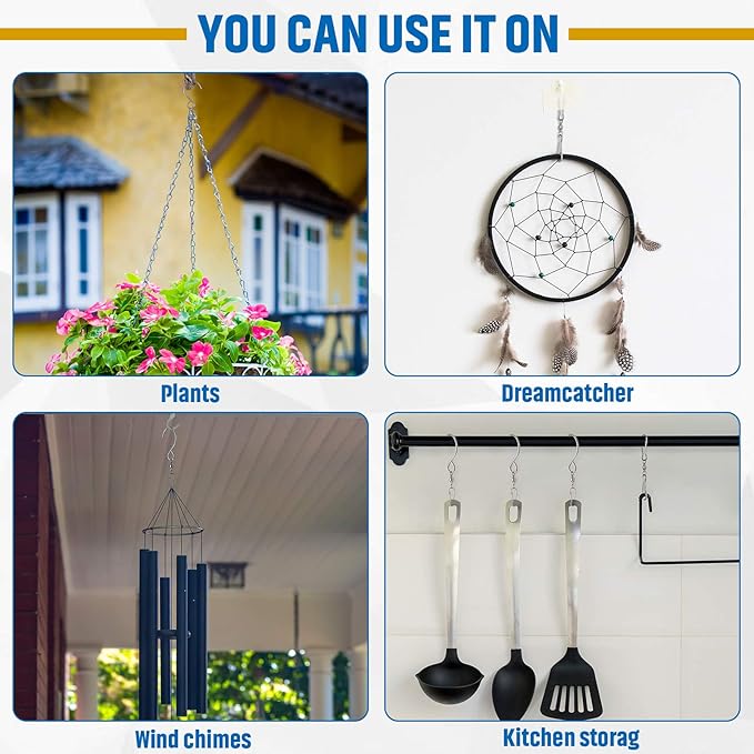 - 360 degree rotation design: our dual hanging spiral hook is suitable for 3D spinners and other decoration that can rotate, twist, hang or display, it is very suitable for hanging crystal pendants, bird feeders, windsocks, window flags, wind chimes, party copper wire lights, etc., to make your home become so delicate and eye-catching