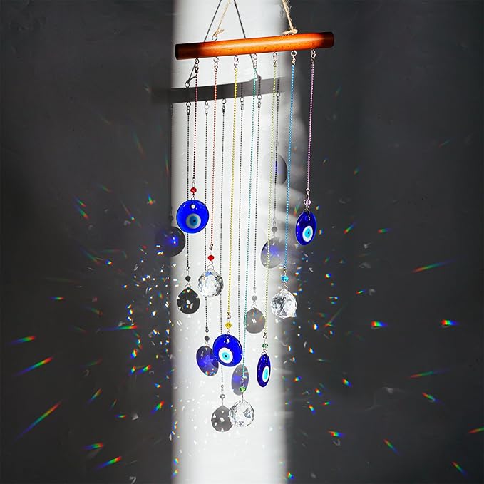 YU FENG Hanging Crystals Suncatcher Ornament Turkish Blue Evil Eye Decor Crystal Ball Prisms Rainbow Maker Pendant for Window Garden