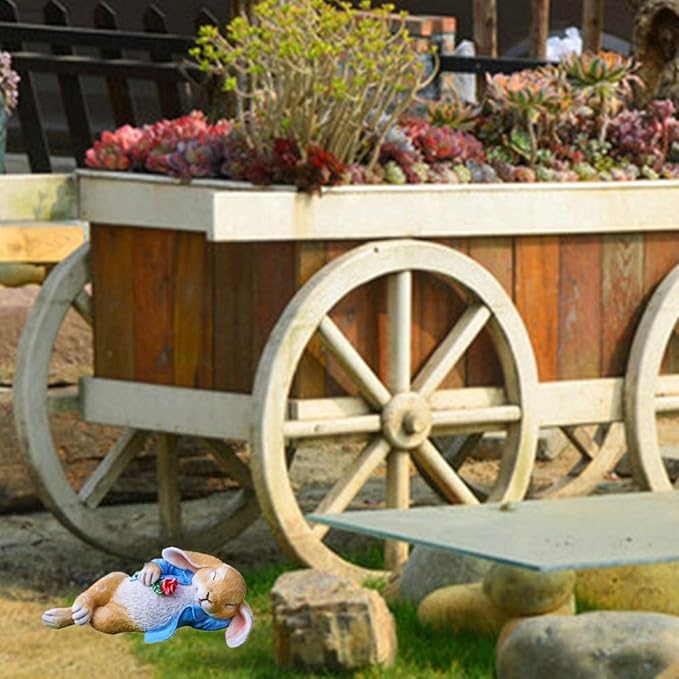 - 🌞 Adorable bunny art decorations are vivid designed, he holds a rose and immerse himself in your garden, the beautiful coat to make it full of vitality. It is perfect gift for your elder in Thanksgiving Day & Christmas.