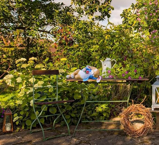 - 🌞 The blue rabbit garden sculpture size : 11.8 x 5.3 x 4.5 inches. Unique and attractive lying posture creates a more intimate atmosphere, he looks like to waiting his girl and enjoy Valentine's Day Together.
