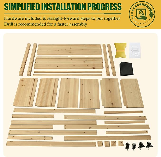 - HIGH-QUALITY FIR WOOD CONSTRUCTION - The structure of this raised garden bed is made of solid cedar which is known for its nature of eco-friendly and sturdiness. The extra three supporting wood panels at the bottom back would provide more safety and sturdiness while using. The maximum potting space capacity is 4.47 cubic feet. No doubt this garden bed would meet your needs of growing herbs and vegetables with care! Feel the touch of its smooth surface for the superiority.
