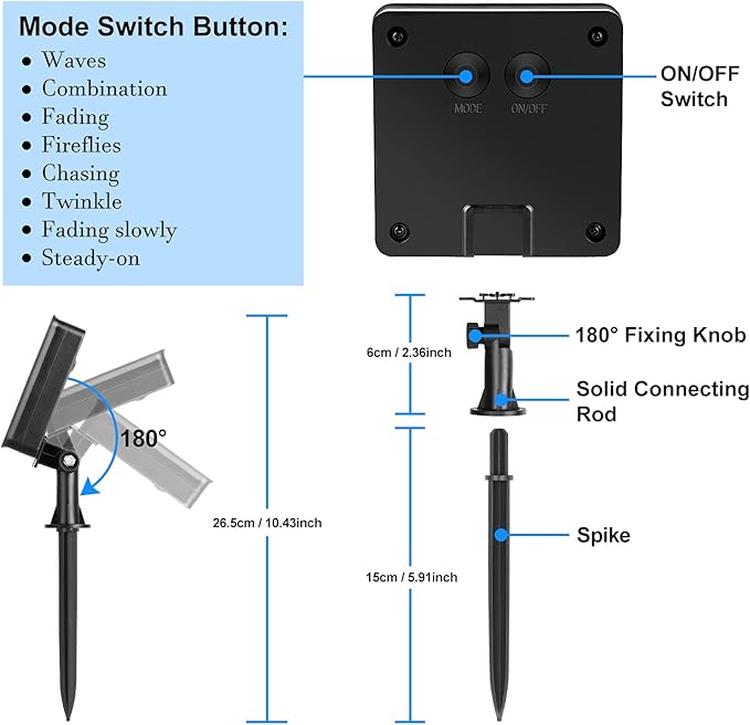 - Super Easy to Install: You surely will enjoy the ease of putting on the string lights for the highly flexible silver wire can be easily bent into any shapes you want and wrapped around trees, fences or any other objects. The solar panels can be either mounted on the wall or plugged into the grass to get sunlight exposure. Considerably all necessary mounting accessories are included in the package for instant use.