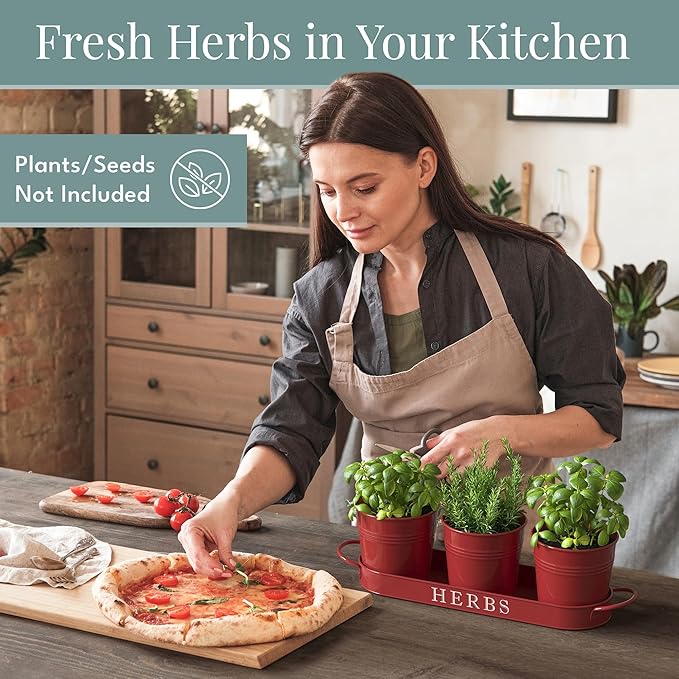 - Set of 3: The set includes 3 metal herb pots and a tray for drainage, making it easy to grow herbs.