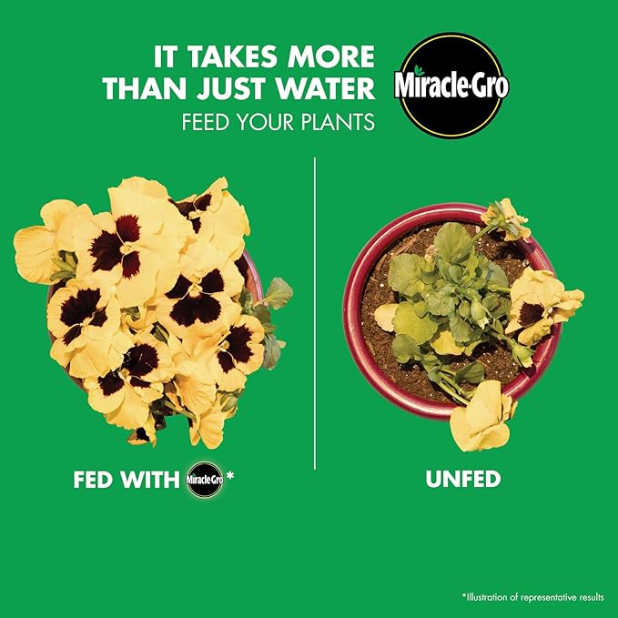 - Use sprayer to apply Miracle-Gro Plant Food to all outdoor plants, including flowers, vegetables, trees, and shrubs