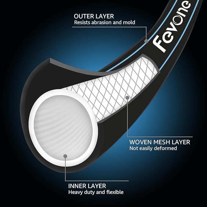 Fevone 50 ft Garden Hose, Heavy Duty Water Hose, Hybrid Polymer, Kink Resistance, Flexible, Durable, Solid Brass Fittings, 3/4" GHT, 5/8" ID, 600 PSI,