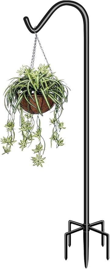 - Simple & Elegant: The outside shepherd’s hook with black paint surface process makes the hanging stake look bright and shiny. Vintage out-curve hook and dark finish will add elegance and beauty to your garden. Blends seamlessly into its surroundings and goes great with most other colors. Pragmatic and premium gifts for Anniversaries, House-warming, Mother's Day, Easter, Halloween, Thanksgiving Day, Christmas, or any other meaningful holidays.