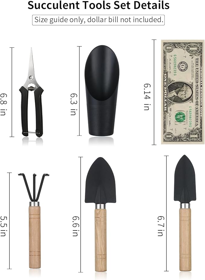 - [SATISFACTION GUARANTEE] Succulent tools set is good helper for your small and delicate projects gardening.Our customer rule number 1 :customer is always right!We are committed to providing all customers with high-quality products and the best service, Should you have any questions about the mini garden tools set or after-sale service, please do not hesitate to contact us. We are here for support and advice!