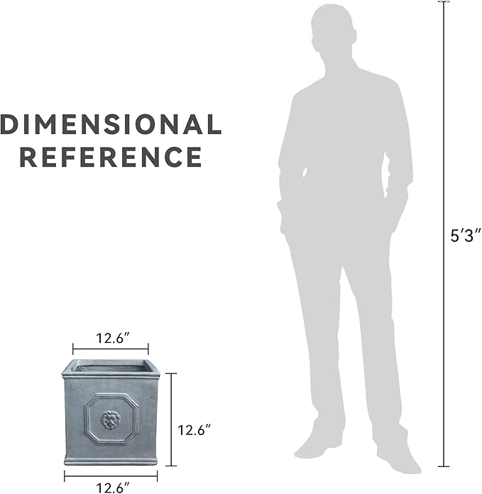 Kante Square Lion Head Concrete Planter, Classic English Style Plant Pot with Drainage Hole and Rubber Plug for Indoor Outdoor Garden Patio Home, 12.6"x12.6"x12.6" Gravel Gray