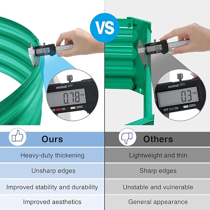 - Double thickness: The average thickness of this galvanized planter galvanized sheet reaches 0.78mm, and the thickest part can reach 1.56mm, which is extremely stable. Compared with the ordinary rectangular elevated garden bed with a thickness of 0.3mm, it will be the right choice for you. buy it! ! !