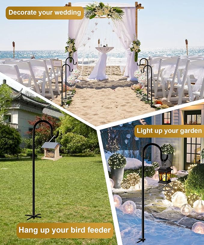 - Wide Range of Uses :The adjustable bird feeder hook is perfect for any occasion, it can not only decorate your garden, lawn or garden, but also for a perfect and memorable wedding. At the same time, as long as the load is not exceeded (92 inch Maximum weight: 12 LBS), you can hang anything you want.Such as outdoor garden decoration, bird feeders, plant pots, solar lights, flower pots, candle holders, garden lights, glass bottles, plant stands and other garden decorations and more.
