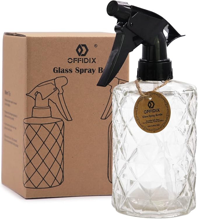 - Size and Capacity: The size of the glass spray bottle is 2.75 x2.75 x7.48 inch, and the capacity is 0.35L/11.8oz. Medium size, easy to carry, fits in your hand but is large enough that you will not have to constantly refill.