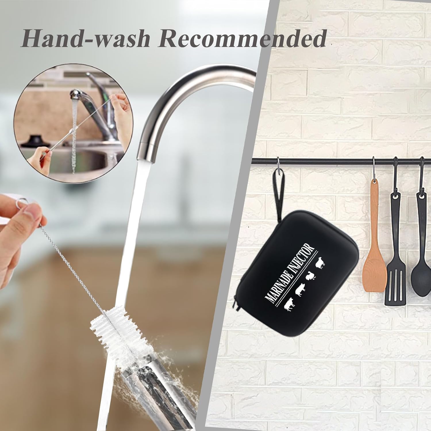 - Easy to Use &Storage-Ergonomic threaded design, Comfortable plunger handle,Friendly pressure control; 3 Professional marinade needles for injecting flavor into Chicken, Turkey, Beef, Pork, Brisket and any other Foods; EVA case will help you prevents the parts missing.