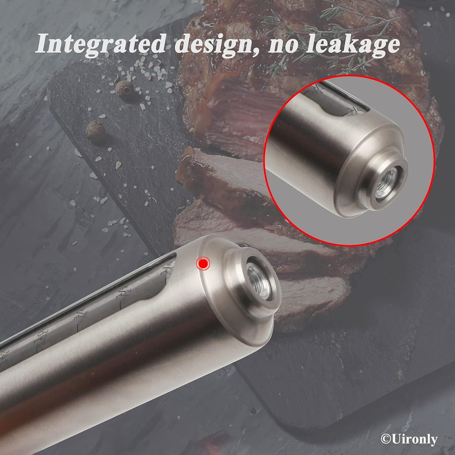 - Specialty Design -- 2.0 oz capacity flavor injector barrel minimizes refill to the utmost extent. Clear plastic measurement window for portioning out the marinade & seasoning injections, Wide plunger handle offers a comfortable grip and provide air tight suction and smooth release(Patent Pending)