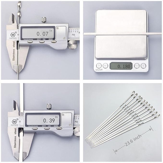 - HIGH QUALITY:Our price is more expensive than others.Because FOWUTAS Skewers For Grilling are made of premium stainless steel which is food grade, rust proof, heat resistant and non-poisonous,Harder than ordinary stainless steel and iron.Flat Stainless steel Barbecue skewers are reusable. The BBQ skewers surface is smooth that grilled food residue won’t get stuck onto the kabob skewer blade