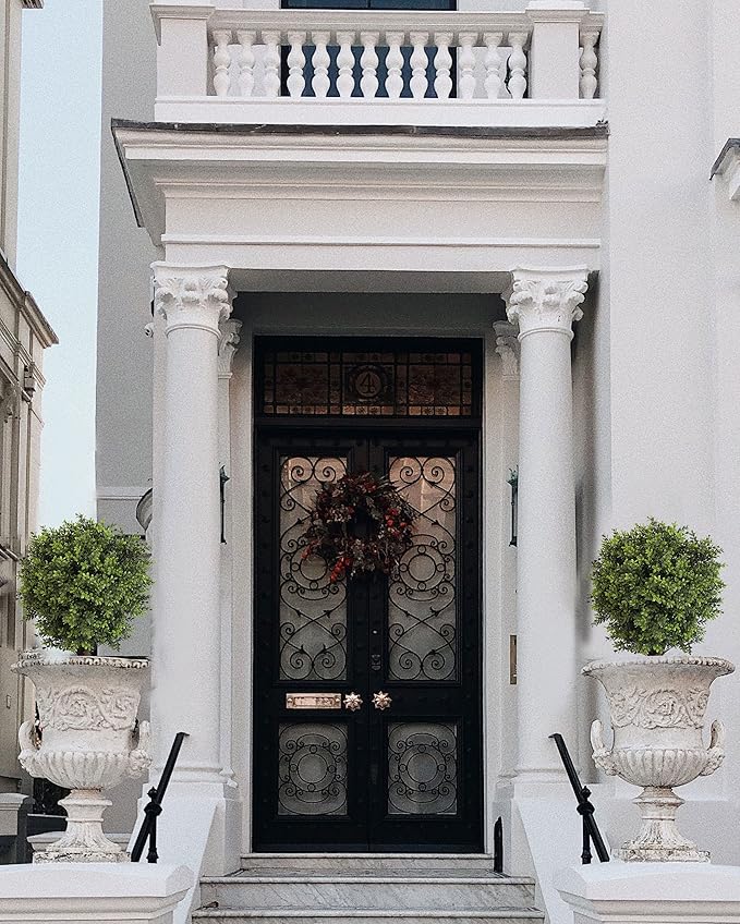 - [Greenly Decoration--boxwood topiary]: You can choose suitable size for decoration in your house. Adding a natural and refreshing look,front door faux plants set of 2 can be used both indoors and outdoors