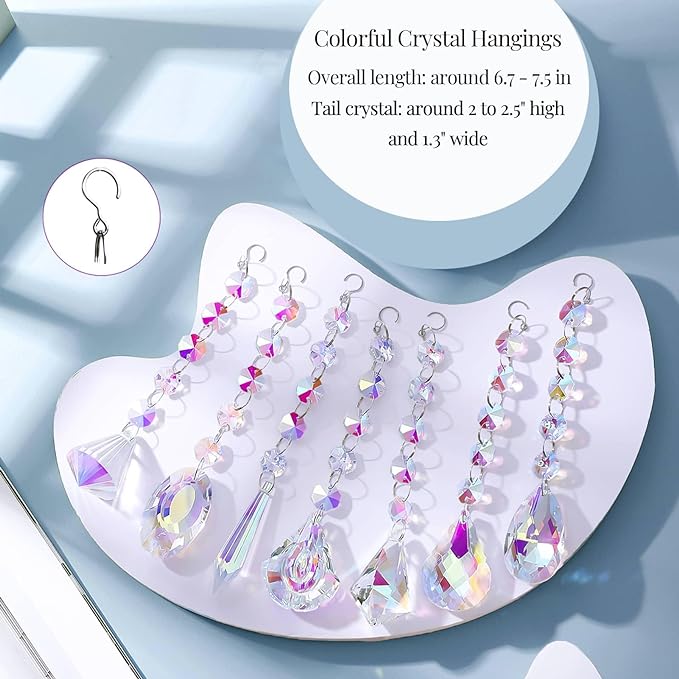 - Set of 7 Colorful Sun Catchers: Made of crystals glass that produces light reflection and catches the light for you. Each ornament length of about 6.7โณ with silver metal hook, colored octagonal crystals glass bead chain and different-shaped pendant