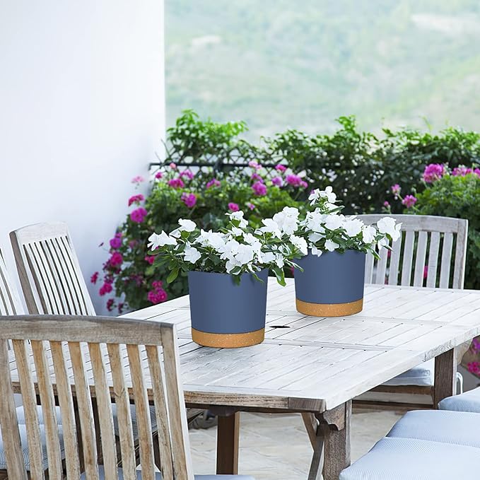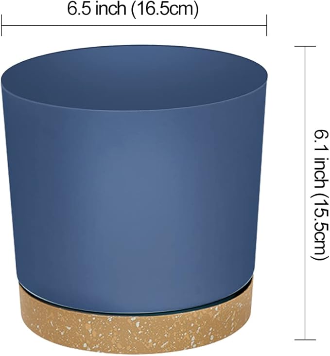 ZMTECH Plant Pots, Set of 6 6.5'' Self Watering Plastic Planter with Drainage Hole and Saucer,Modern Decorative Flower Pot for Indoor Outdoor House Plants, Succulents, Flowers - Blue