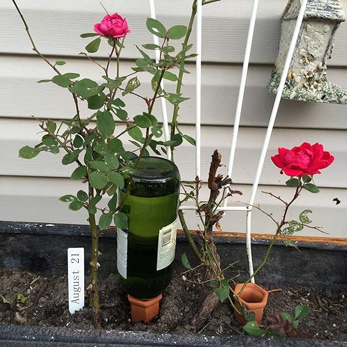 - Simply recycle any long-necked bottles such as wine bottles, glass beer bottles, soft drink bottles, etc. No other accessories are needed. Place this device into the soil and fill the bottle with water and you're done.