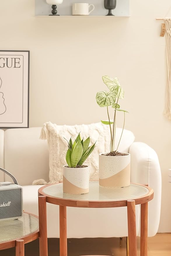 - 【Plant Recommendation】These small ceramic planters add a decorative touch and provide a stylish home for a variety of authentic or synthetic flora including succulents, cacti, snake plants, aglaonema, and peace lilies.