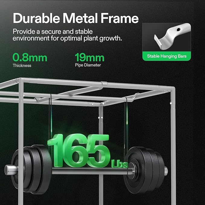 - Sturdy Frame & Strong Zipper: The thickened 19mm poles and durable metal frame enhance the overall load-bearing capacity, up to 165 lbs.; The strong zippers and tightly reinforced seals prevent light seepage and maximize the reflectivity of usable light