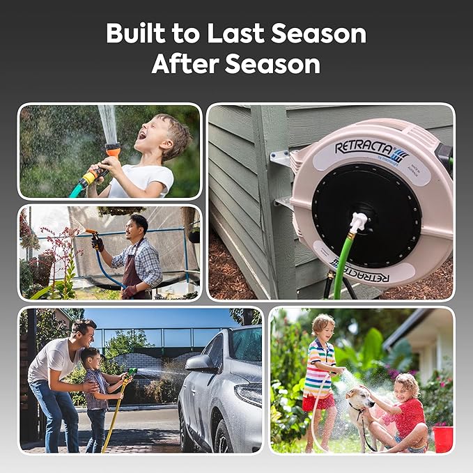 - Stable Auto Rewind System: The Retracta automatic hose reel returns the hose with a gentle tug. Built with industrial grade materials, our garden hose reels are designed for home, garden center or farm application. Nozzle not included.