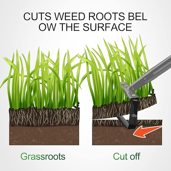 - 【High Quality Metal Material】The Garden Tool is made of high-quality and grade steel, hand-forged and welded and heat treated blade, which is sturdier and durable and made to last for years. The oscillating hoe uses push-pull motion to cut weed and shallow roots, it is more high-effectively.