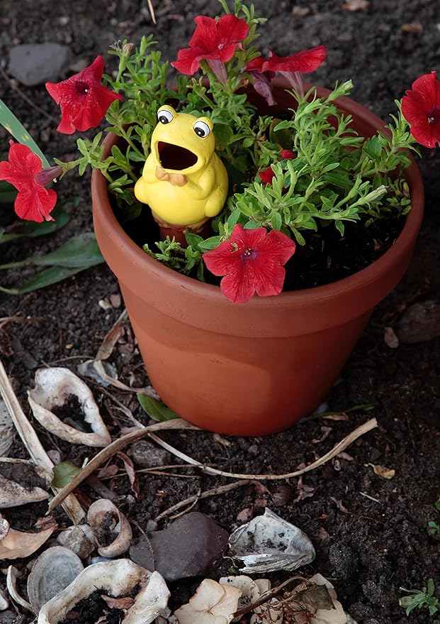 Terracotta Plant Self Watering Spikes - Set of 3 Terracotta Self Watering Bulbs, Self Watering Stakes, Self Watering Globes for Pot Plants (Frogs Painted, Small)