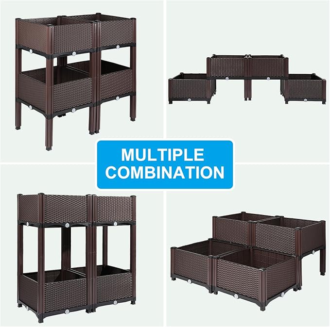 MAYOLIAH Raised Garden Bed with Drainage Elevated Planter Box Plastic Raised Beds for Gardening Vegetables Herb Flowers, Perfect for Indoor Outdoor Planting, 4 Boxes Brown